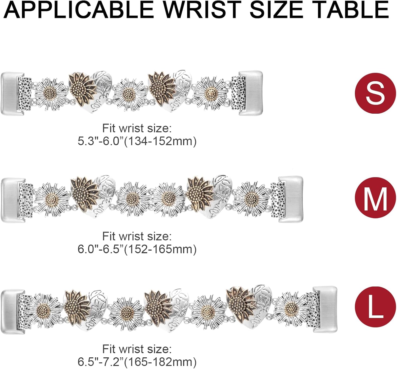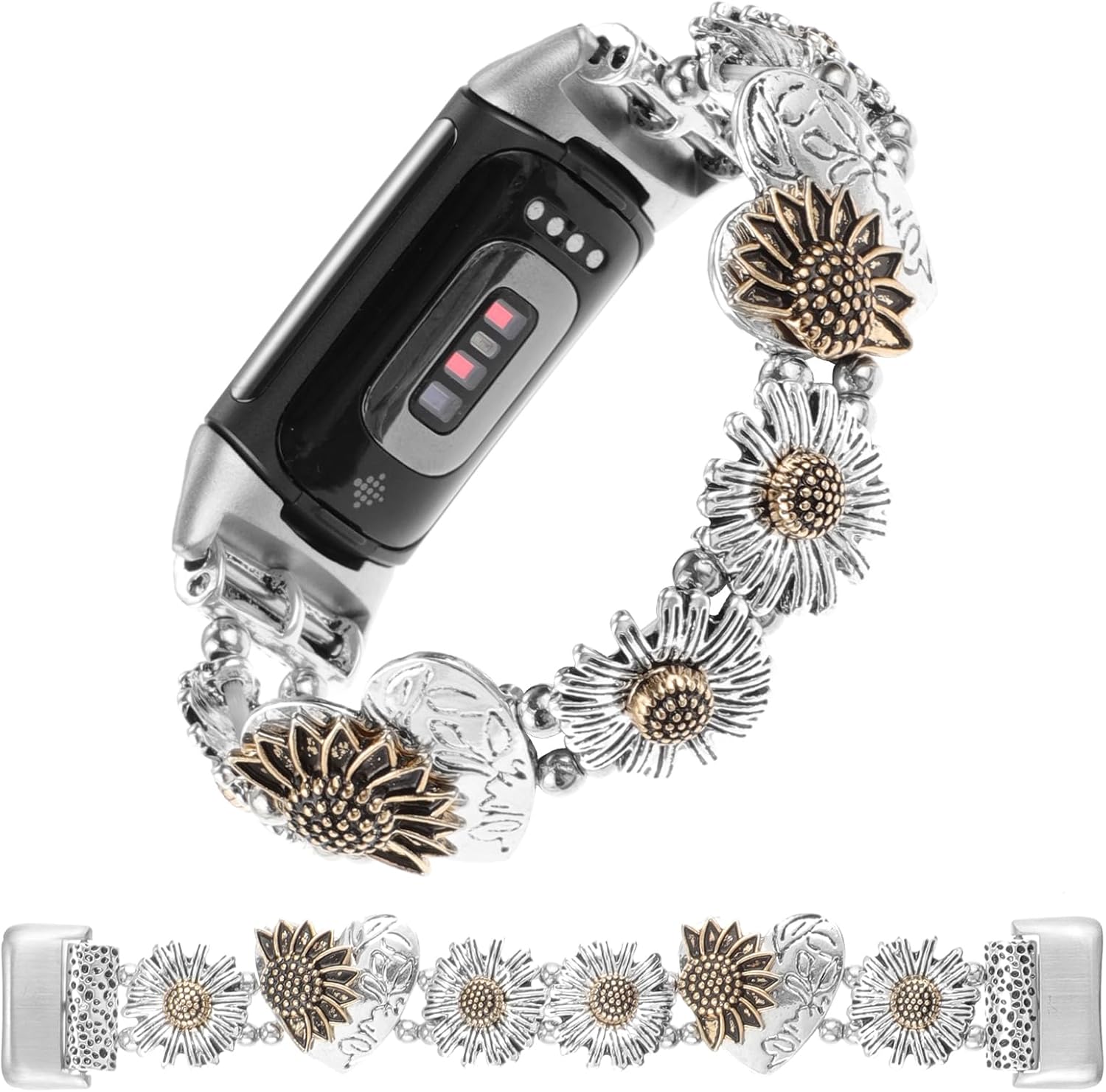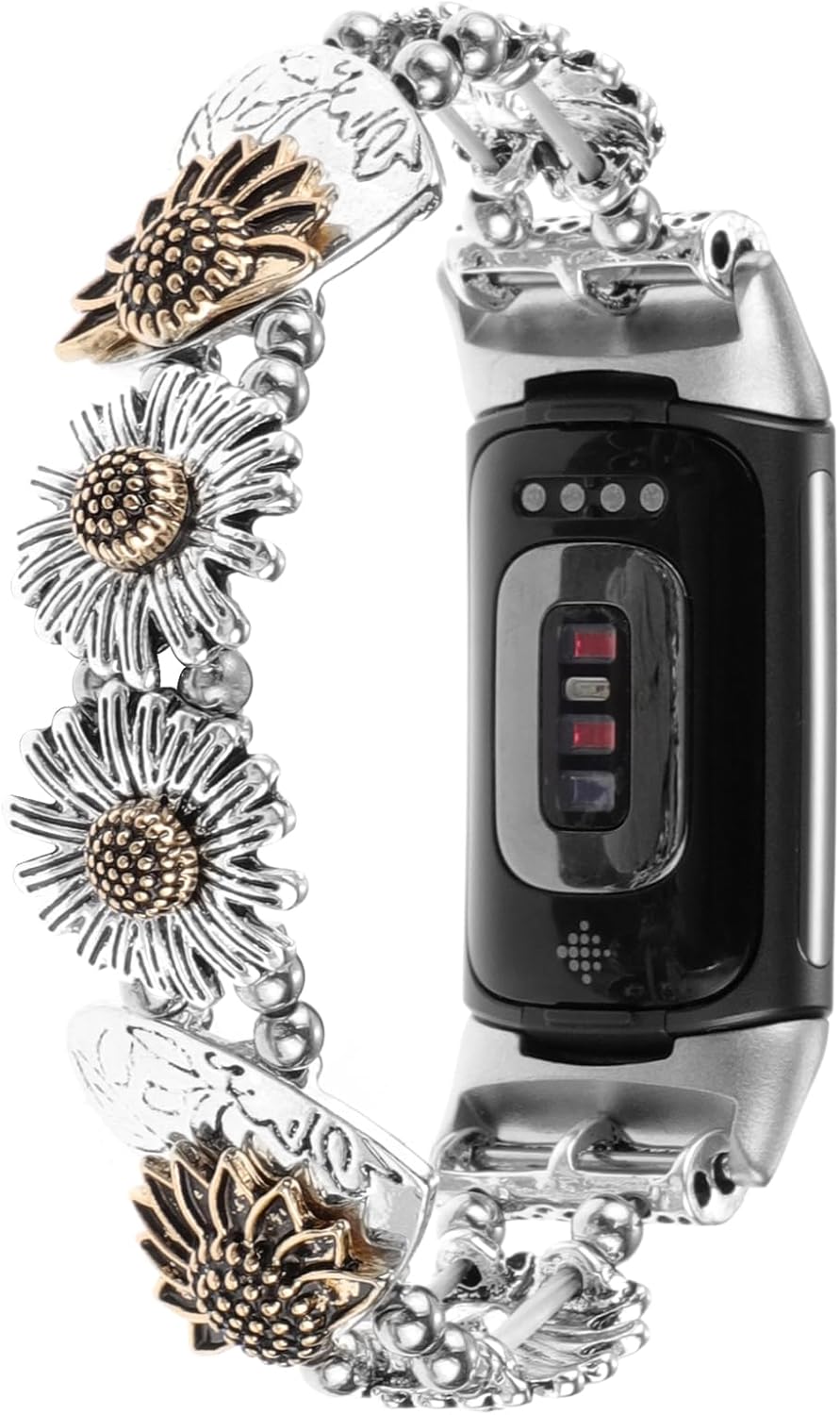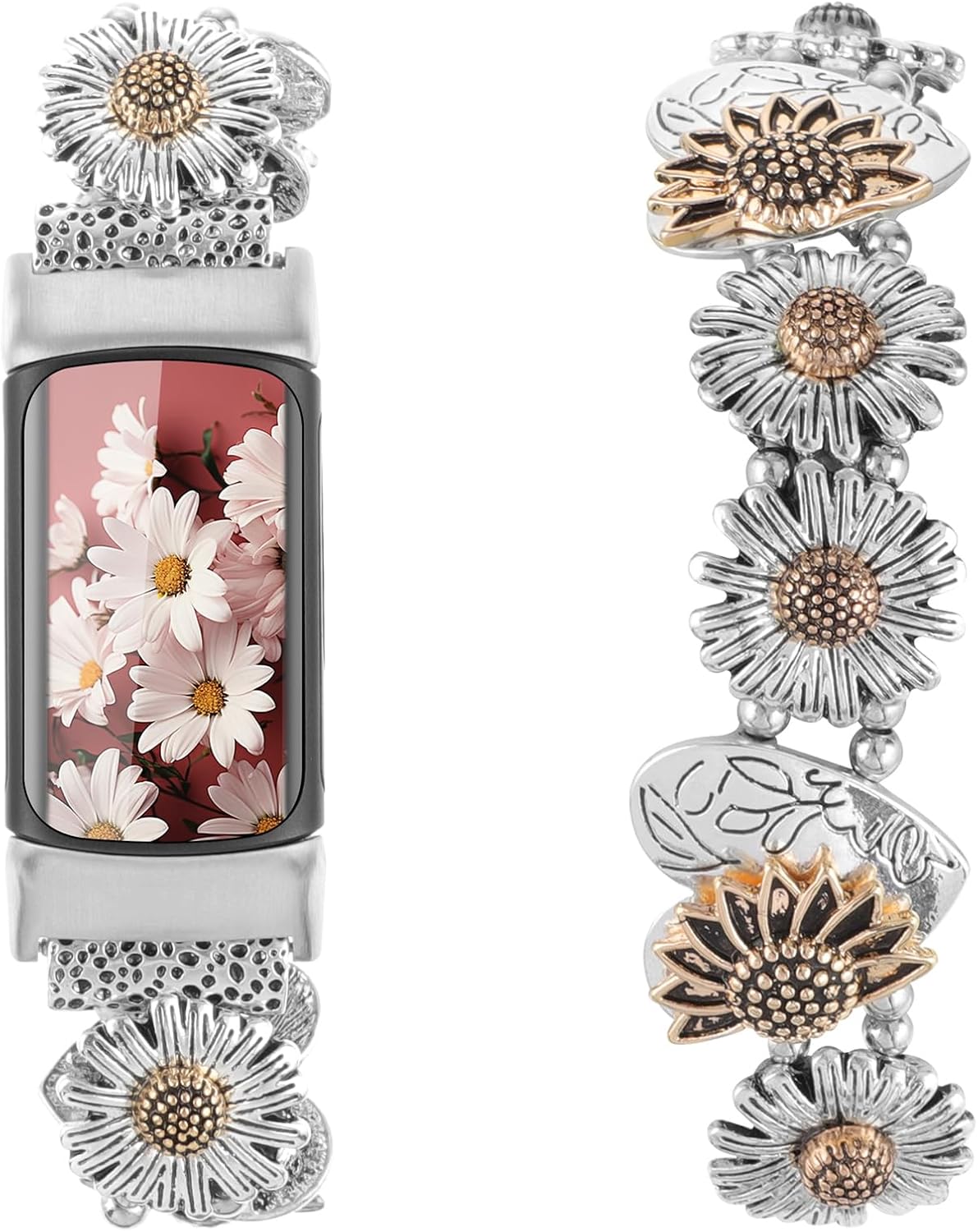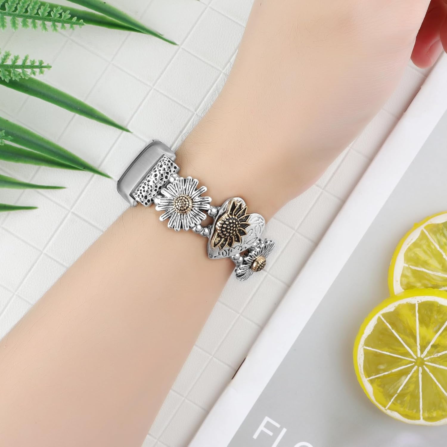 Sunflower bracelet compatible with Fitbit Charge 5/ Charge 6 Band women cute metal floral boho strap. Sunflower is very beautiful, it always chases the sun and represents positivity, loyalty, enthusiasm and warmth. Sunflowers symbolize light, warmth and happiness. It would be a great gift to express your love for your mother, girlfriend, fiancee, wife, valentine, family or just a friend,etc.