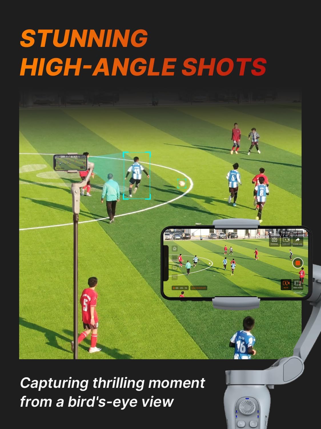 XbotGo Phone Gimbal for Sports, Record Basketball&Soccer Games, AI Automatic Shooting, Unmanned Operation, 3-Axis Phone Gimbal, Portable & Foldable, Vlogging Stabilizer, YouTube TikTok Video