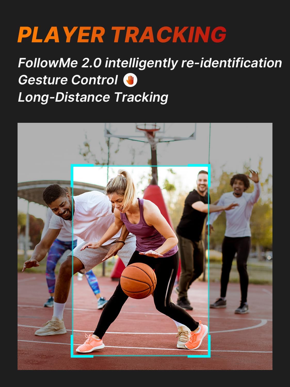 AUTOMATIC TEAM SPORTS TRACKING: Shoot soccer and basketball games and trainings. Good for both Youth and Adults (auto speed adaptation)