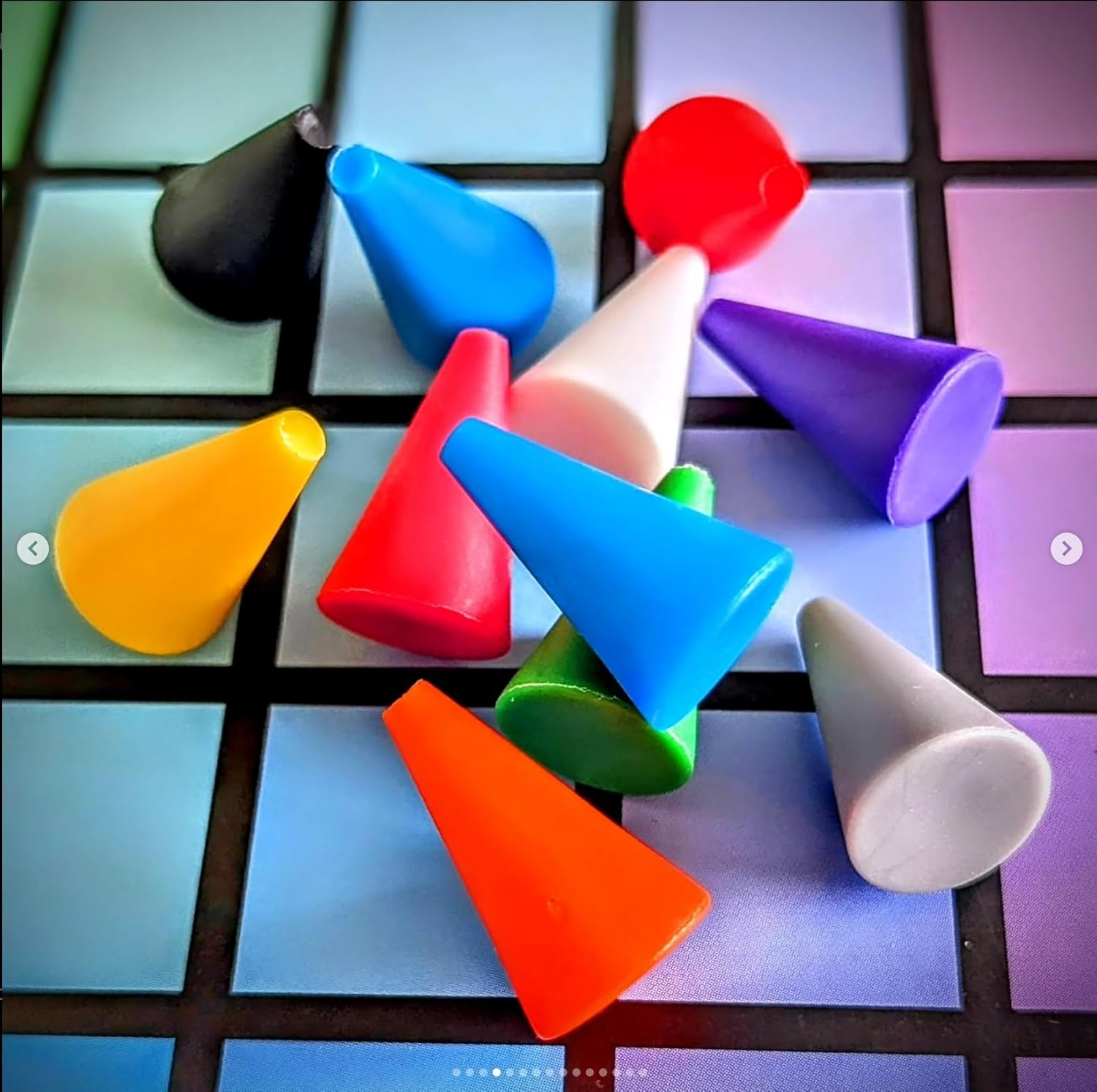 • 🧩 COMPLETE SET OF GAME PIECES FOR 10 PLAYERS: Includes everything you need for a full game night: a large colour board, 30 player cones (3 per player), 60 scoring markers, cue cards, and a score frame. Each piece is crafted for durability and colour distinction, allowing for a smooth, well-organised game flow. Supports up to 10 players simultaneously, perfect for large gatherings.