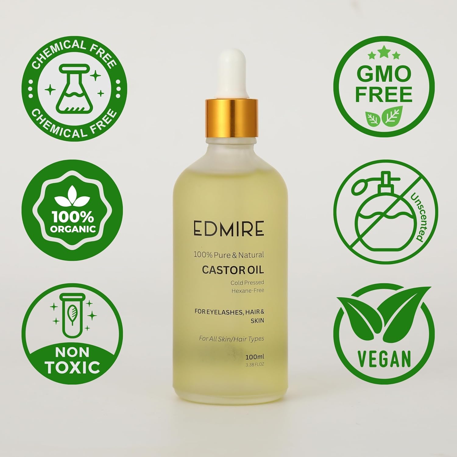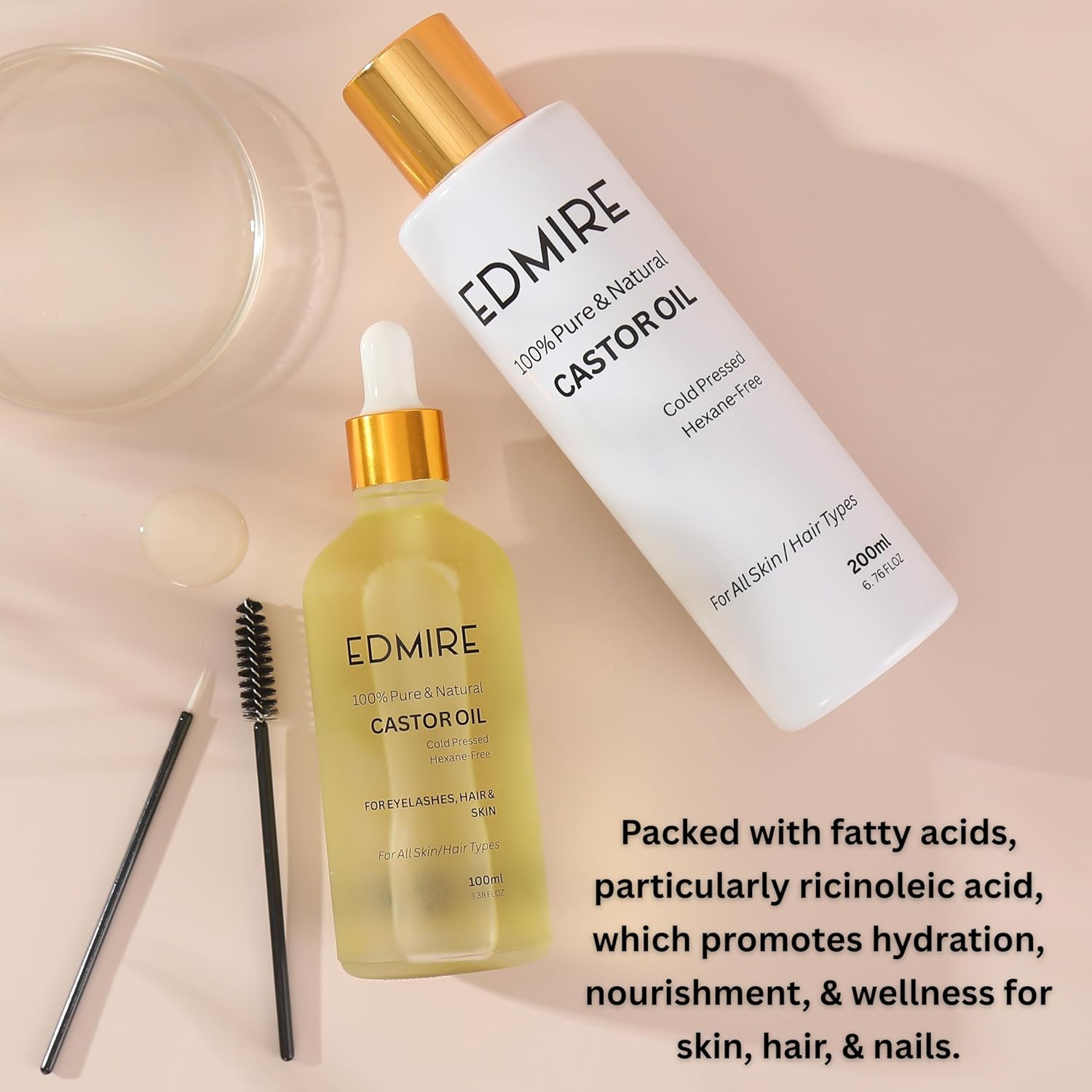 Enhance Eyelash & Eyebrow Hair Growth Naturally – Achieve fuller, healthier brows & lashes with EDMIRE castor oil for eyelashes and eyebrows. Promotes thicker, longer lashes & well-defined brows with consistent use.