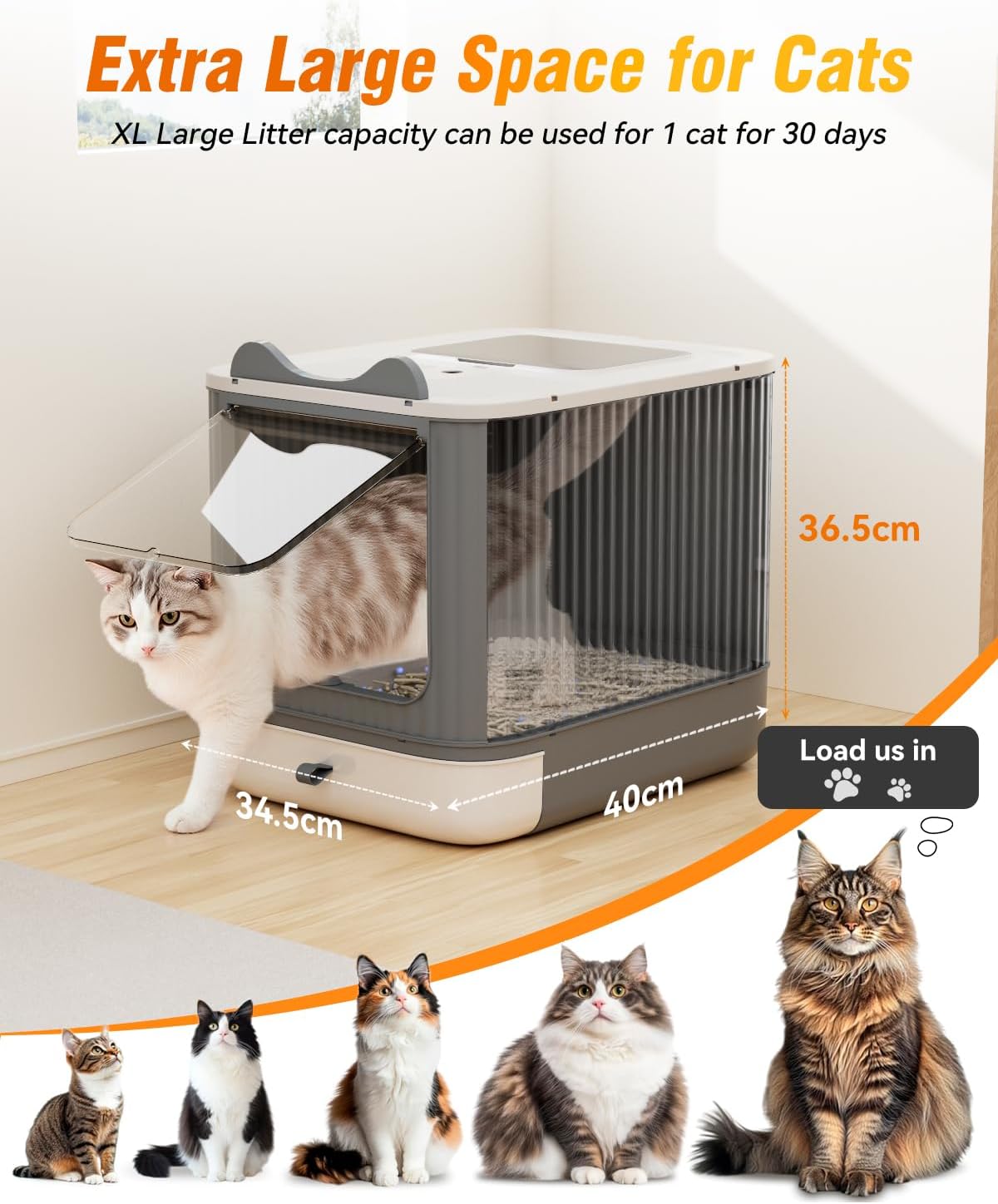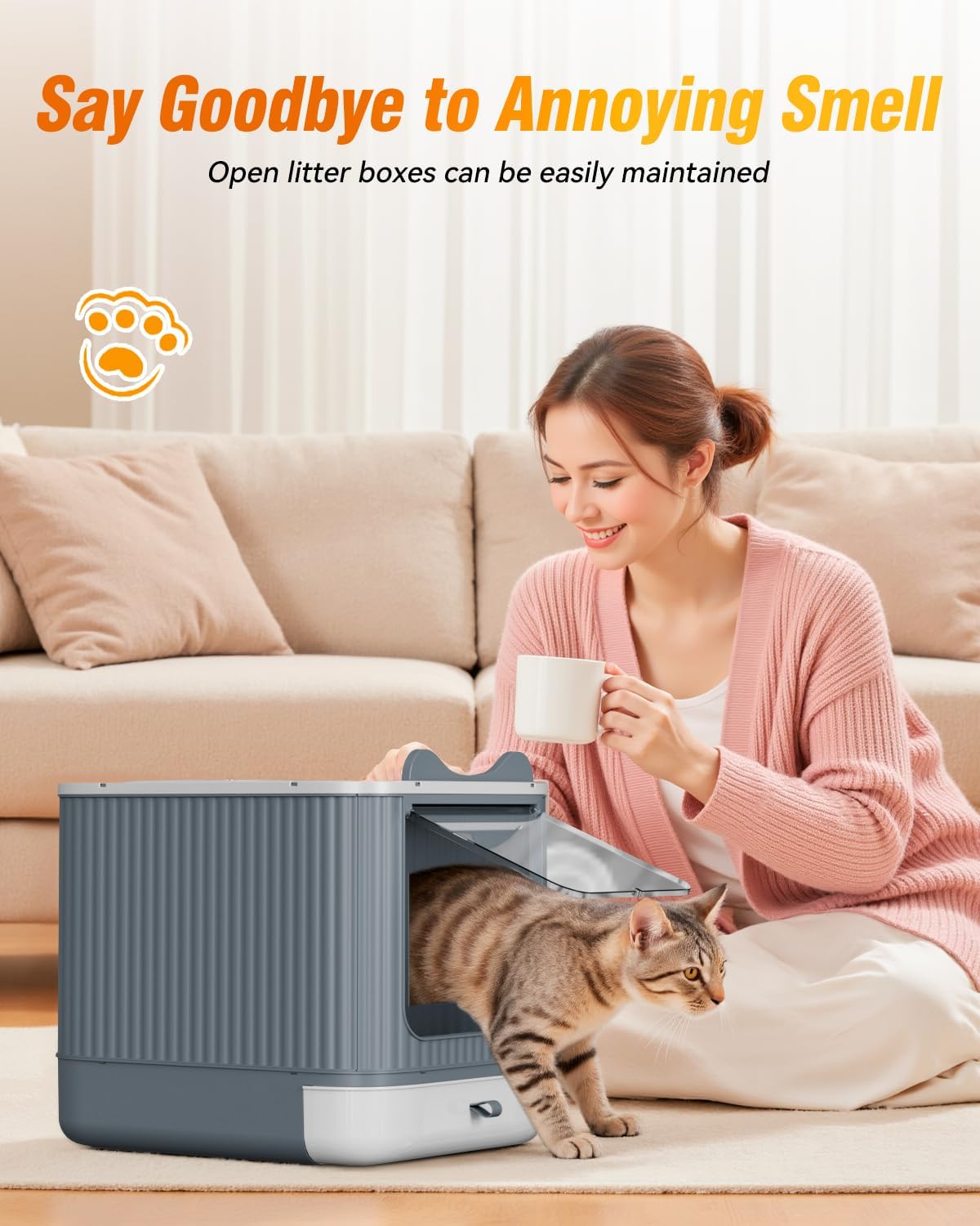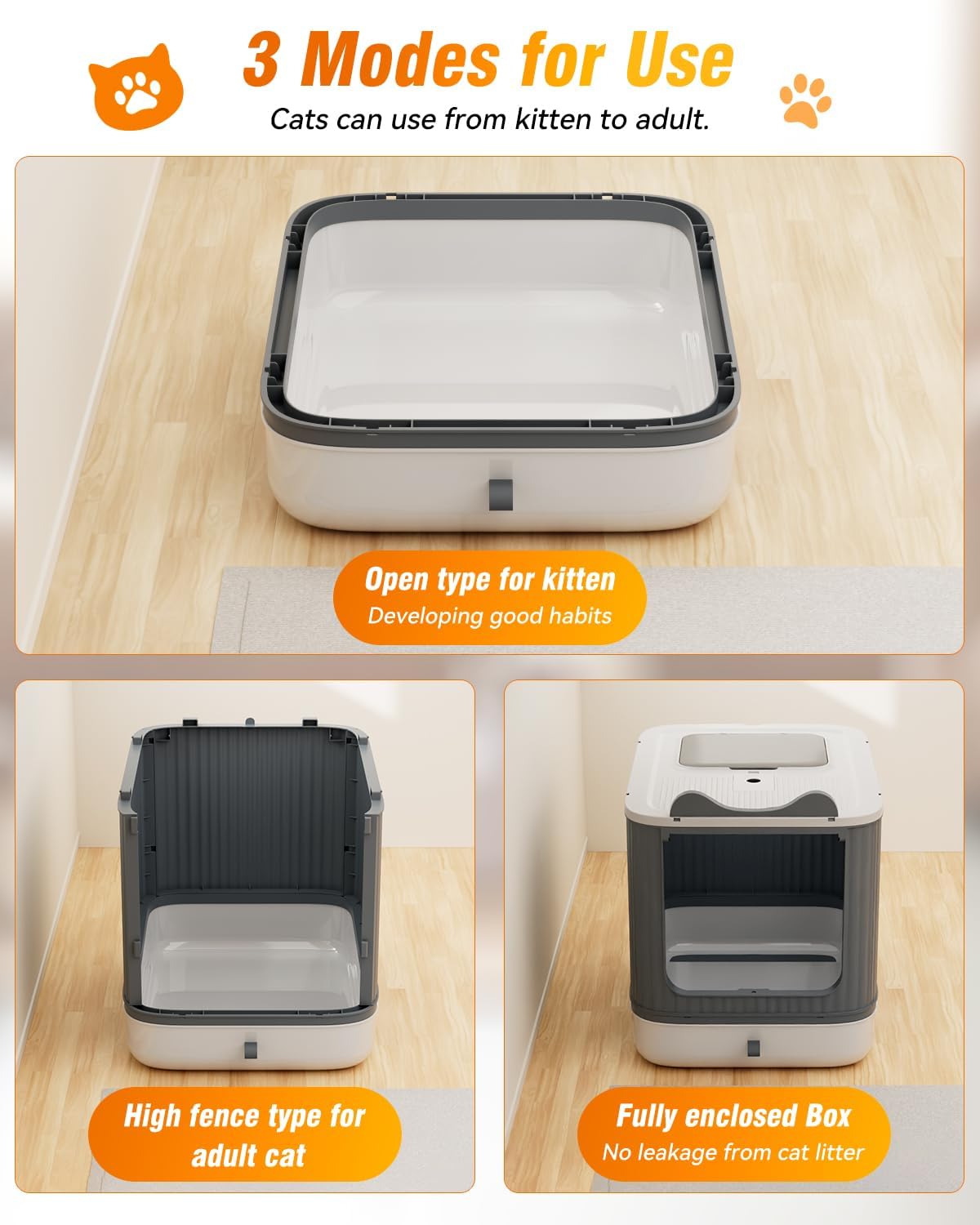 • 【Dual Entrance for Versatile Access】Featuring both a top and front entrance, the Cat Litter Box accommodates cats with different preferences and physical abilities. Young, agile cats may prefer the top entry, while older or arthritic cats can use the front entrance with ease, making this Cat Litter Box suitable for all life stages.