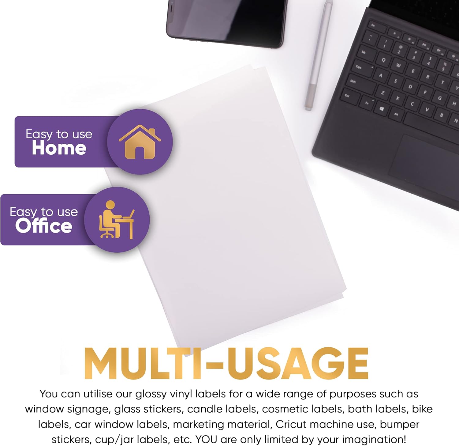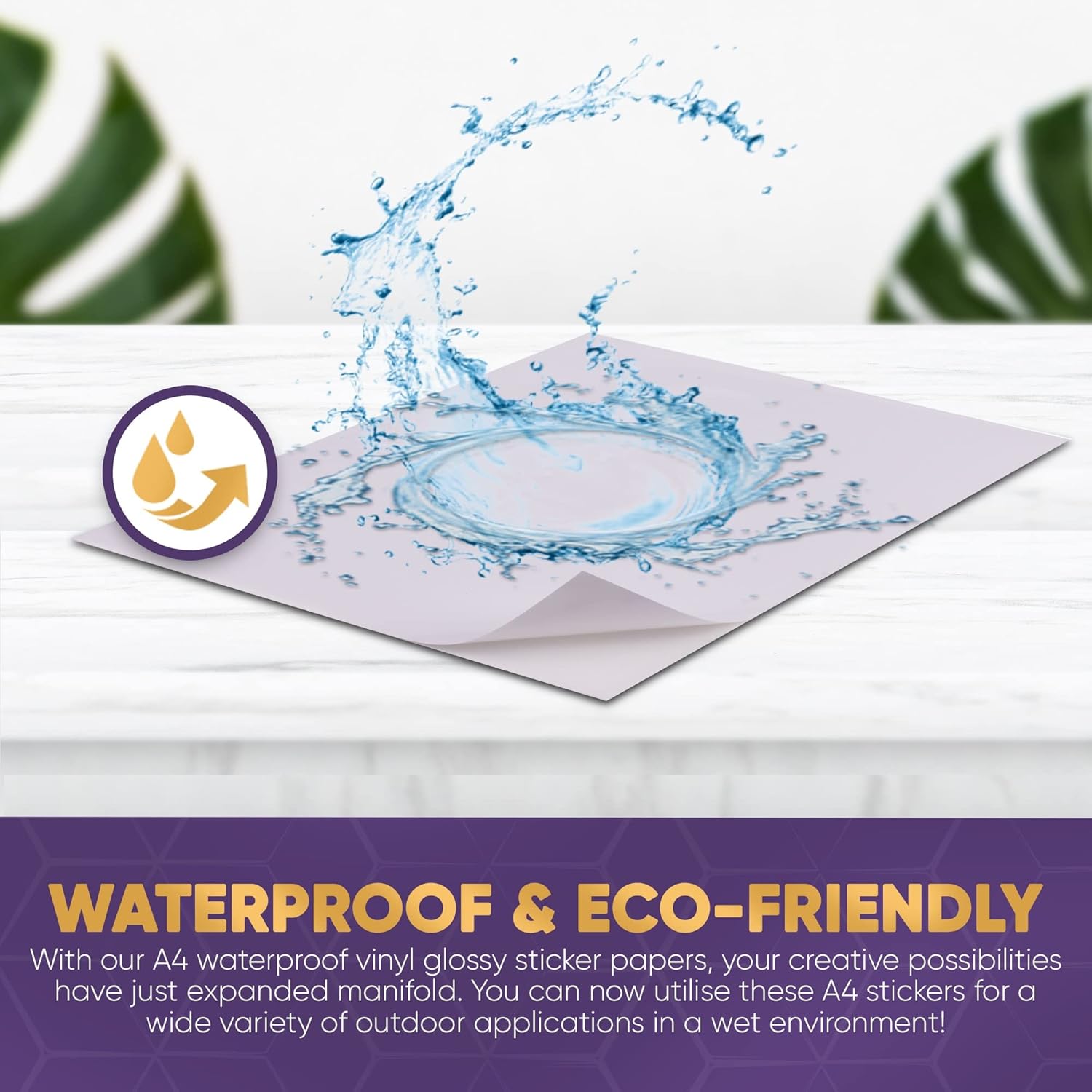 • Waterproof & Eco-Friendly Printable Vinyl: Our super value pack of A4 waterproof vinyl sticker sheets can be used in a variety of indoor and outdoor applications in a wet environment. Our easy release backing sheets are recyclable, and the powerful glue makes application quick and easy.