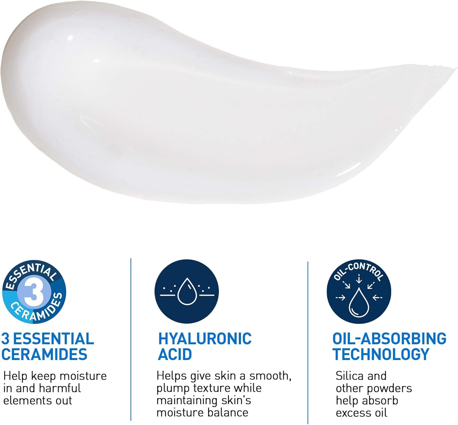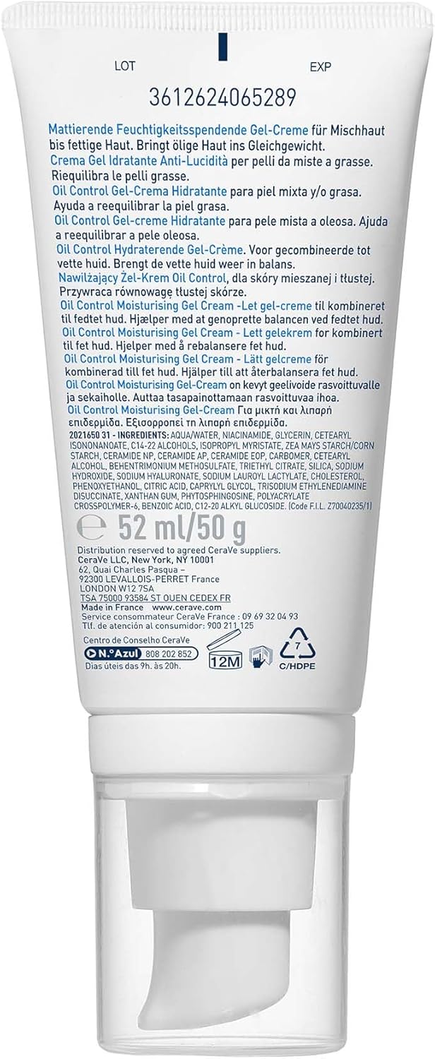 CeraVe Moisturizing Gel-Cream Oil Control Combination to Oily Skin 52 ml is the perfect product for mattifying, rebalancing and moisturizing your skin on a daily basis. Enriched with three essential ceramides naturally present in the skin and hyaluronic acid, this gel-cream repairs the skin barrier while soothing thanks to niacinamide, a powerful anti-inflammatory active ingredient. Its innovative technology guarantees continuous hydration by encapsulating the active ingredients, allowing them to diffuse over a long period of time into the skin. Designed for oily skin, it moisturizes while absorbing excess sebum, helping to rebalance and reinforce the skin's protective barrier. Its light, non-sticky texture provides a sensation of freshness on application, while ensuring long-lasting hydration and soothing irritation all day long.