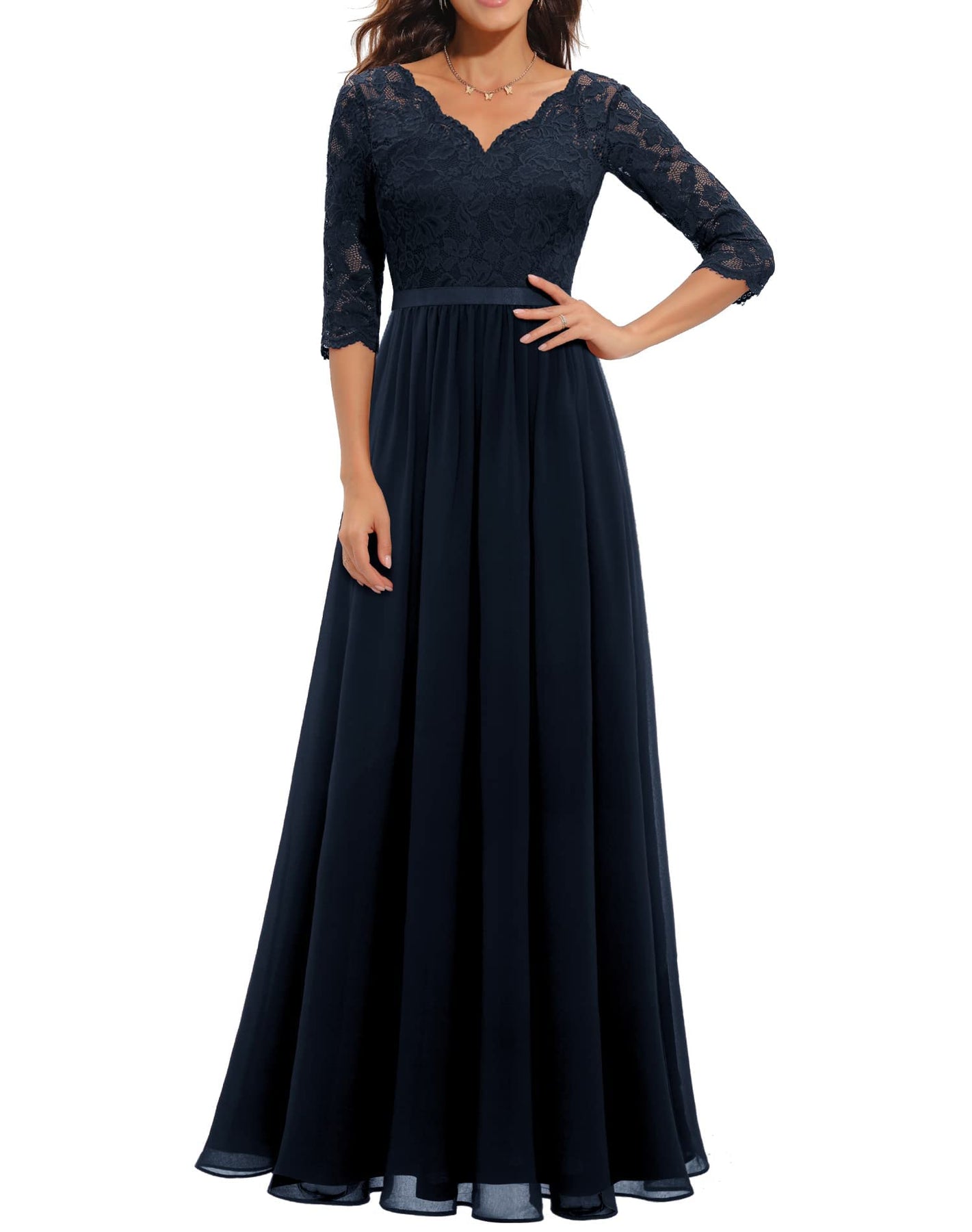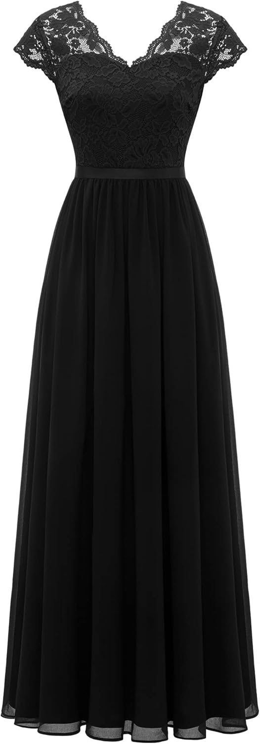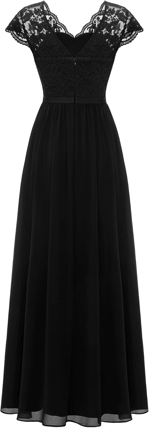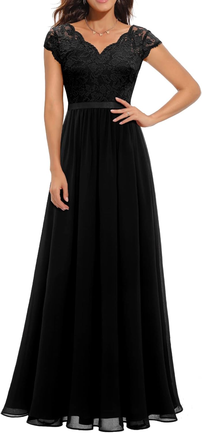 Daisyaner Women's Formal Floral Lace Maxi Dress Evening Party Elegant V-Neck Dresses for Wedding Guest