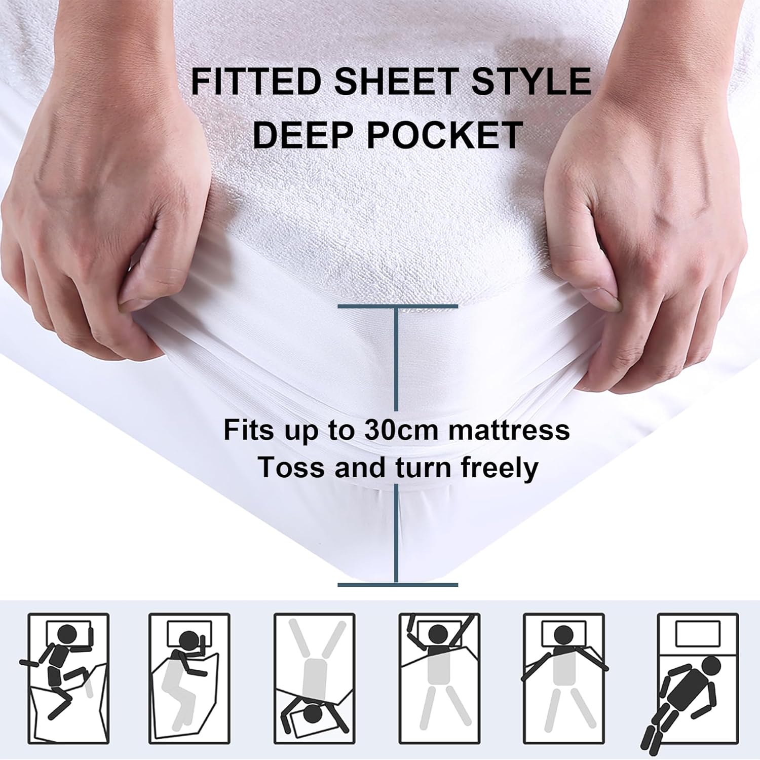 FITTED SHEET STYLE DESIGN: King Size Mattress Protector 180x200+30cm - 30cm Deep Pocket, all size fit up to 20-50cm, great for any type of mattress including innerspring, latex or memory foam.