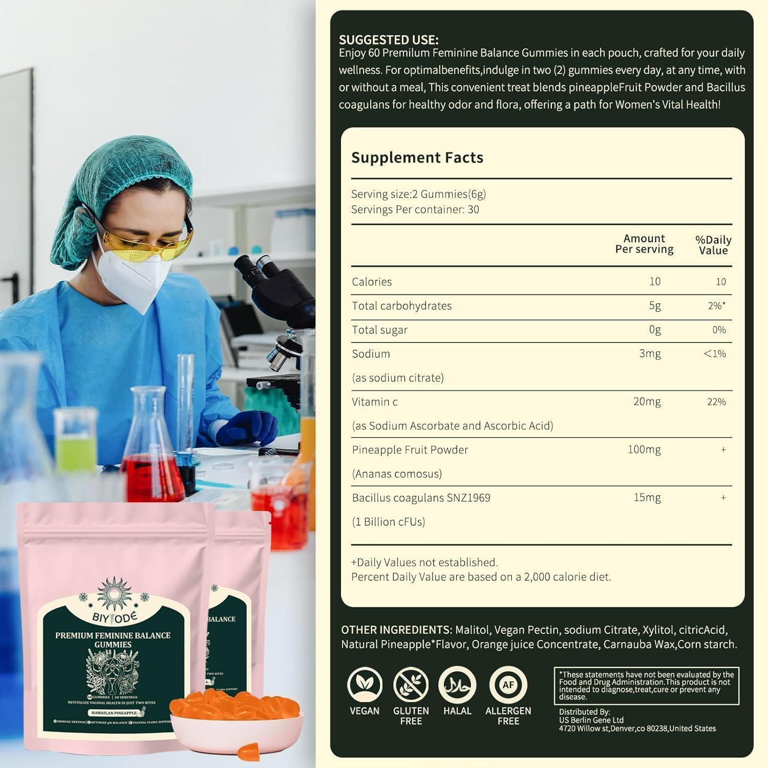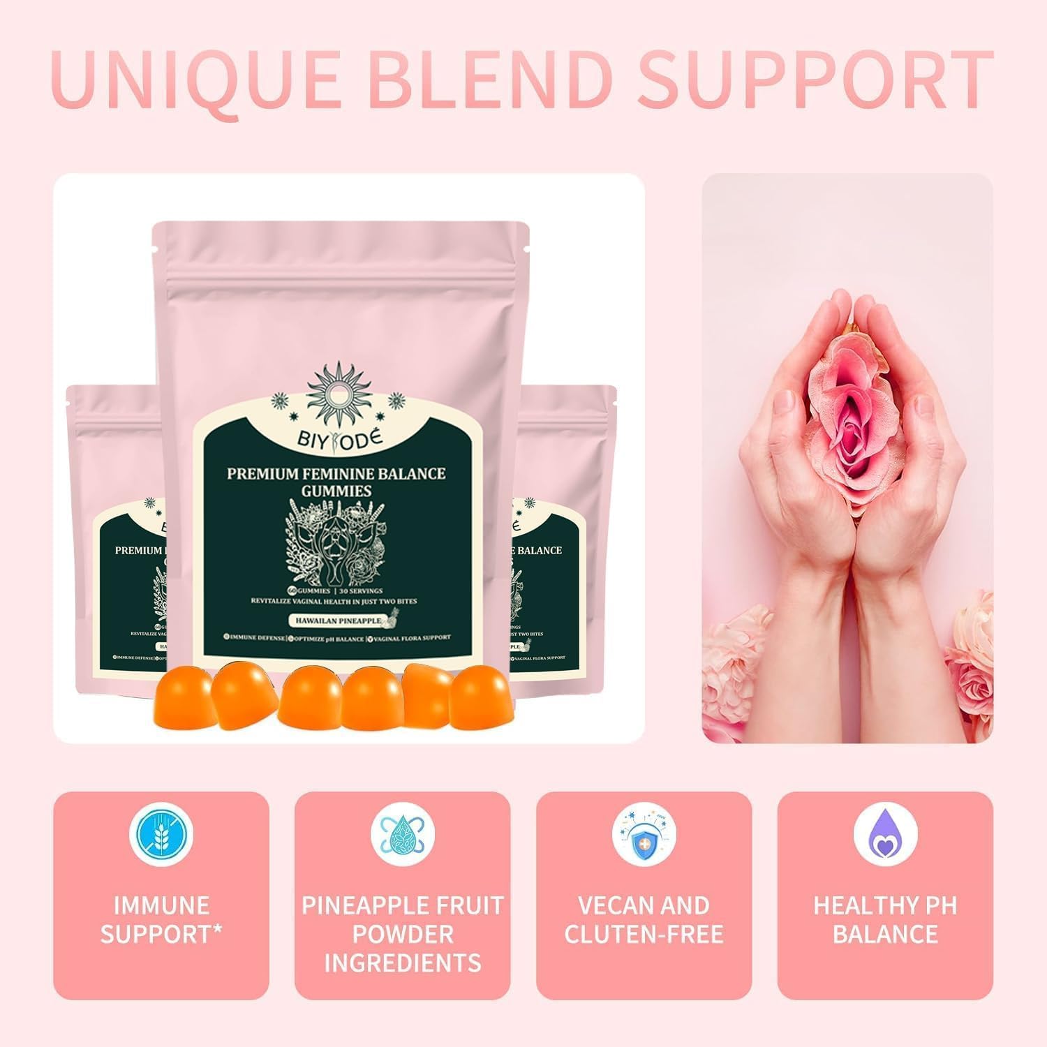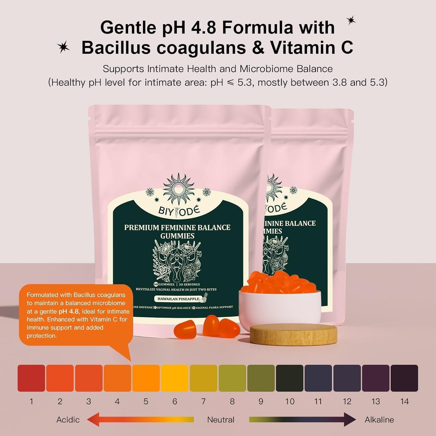 【Supports Women’s Balance】Our Feminine Balance Gummies are designed specifically for women, containing key probiotics like Bacillus Coagulans to help maintain balance and a healthy pH level, reducing the risk of infections and unwanted odors. With a natural ingredient formula, these gummies offer gentle daily support for women’s health.