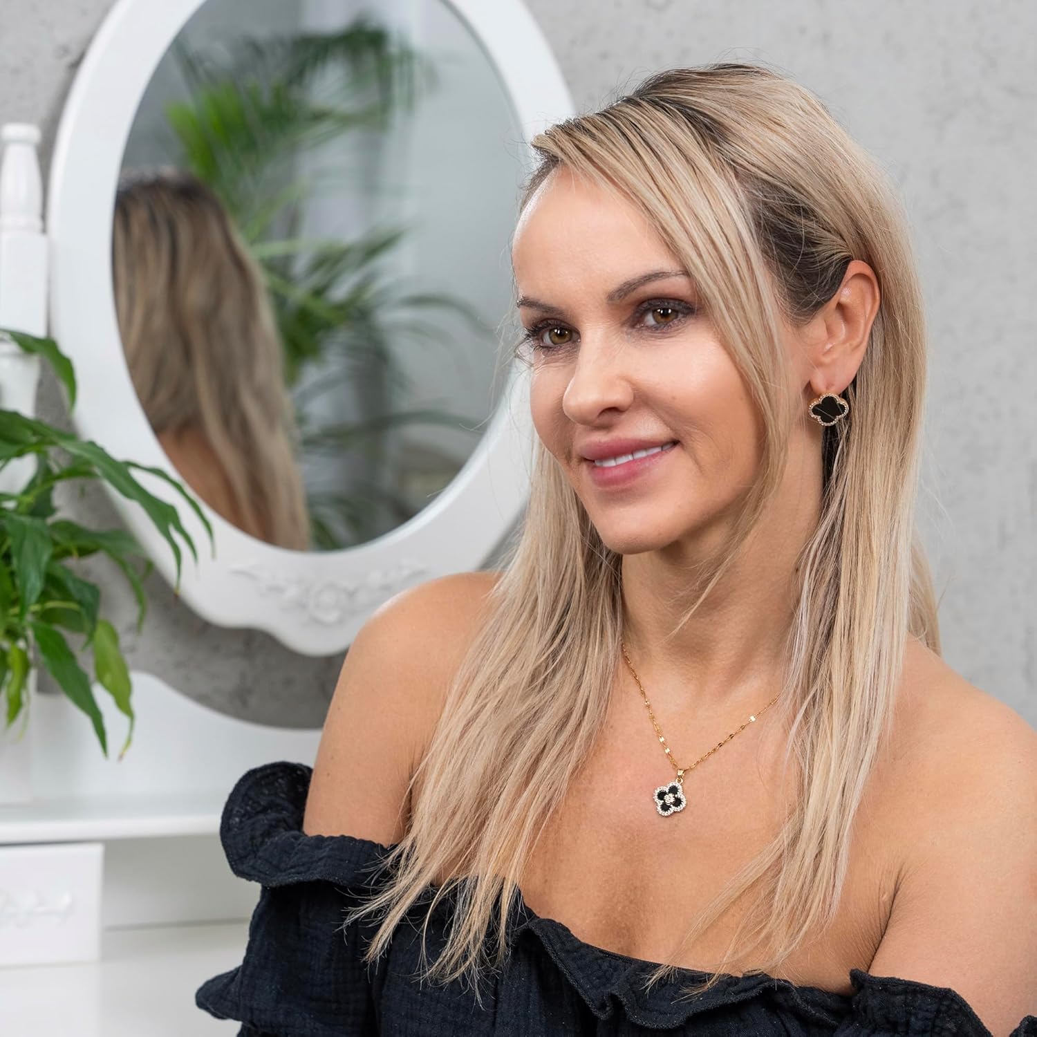 Four Clover Earrings For Women 18K Gold Plated w/Mother of Pearl or w/Black Agate and Cubic Zirconia