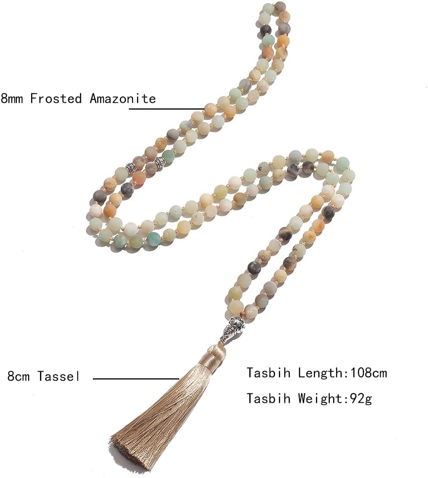 Hovaete Tasbih Prayer Beads Allah & Muhammad Islamic Misbaha Tasbeeh Sibha 99 & 33 Bead Necklace & Bracelet (8mm Amazonite)