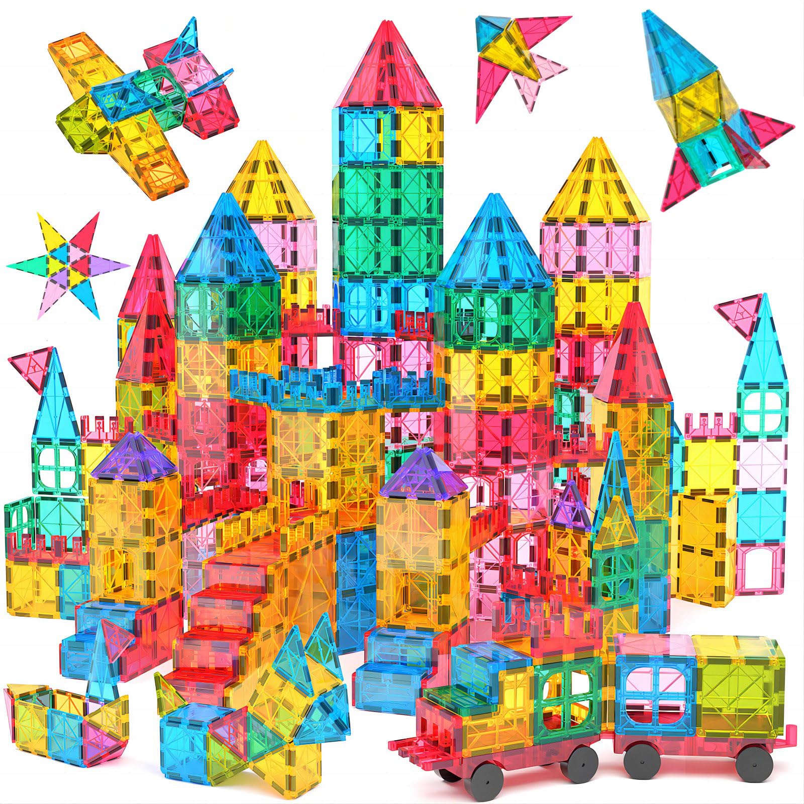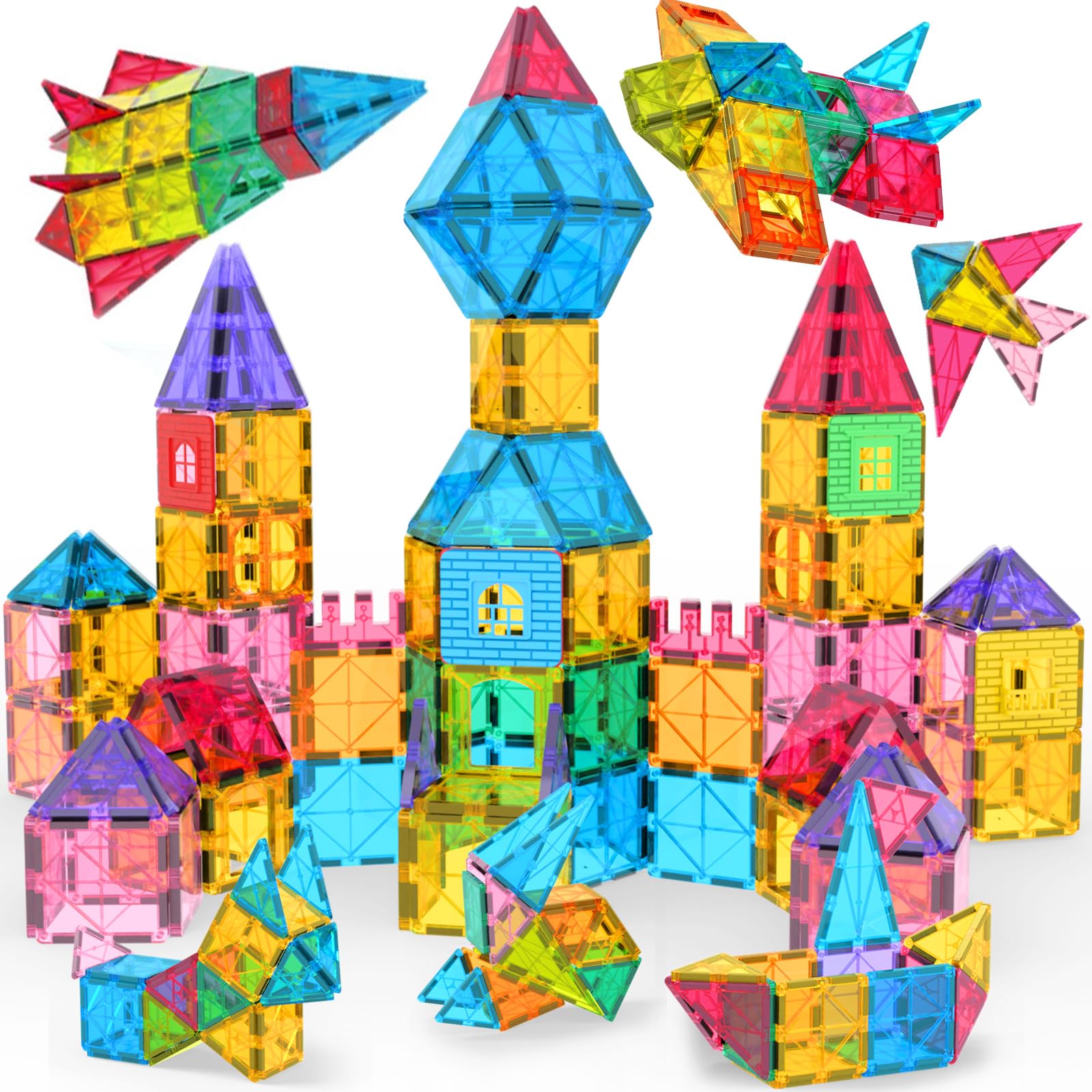 Educational STEM kids toys --- Learning By Playing --- By playing this magnetic building tiles, children can acquire strong sense of color, geometrical shapes including 3D forms numbers counts, magnetic polarities & architectural design at early age. Perfect educational presents for kids boys girls 3 4 5 6 7 8 9 10 11 12 years old