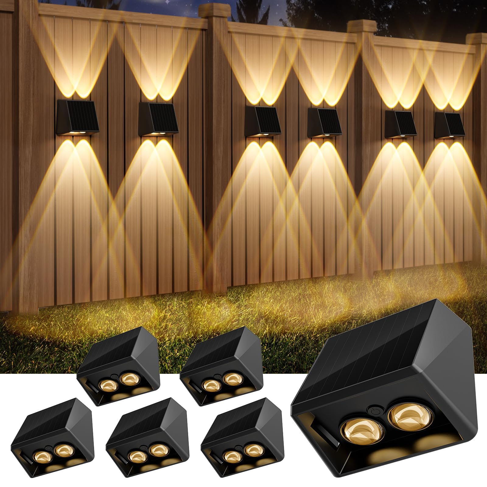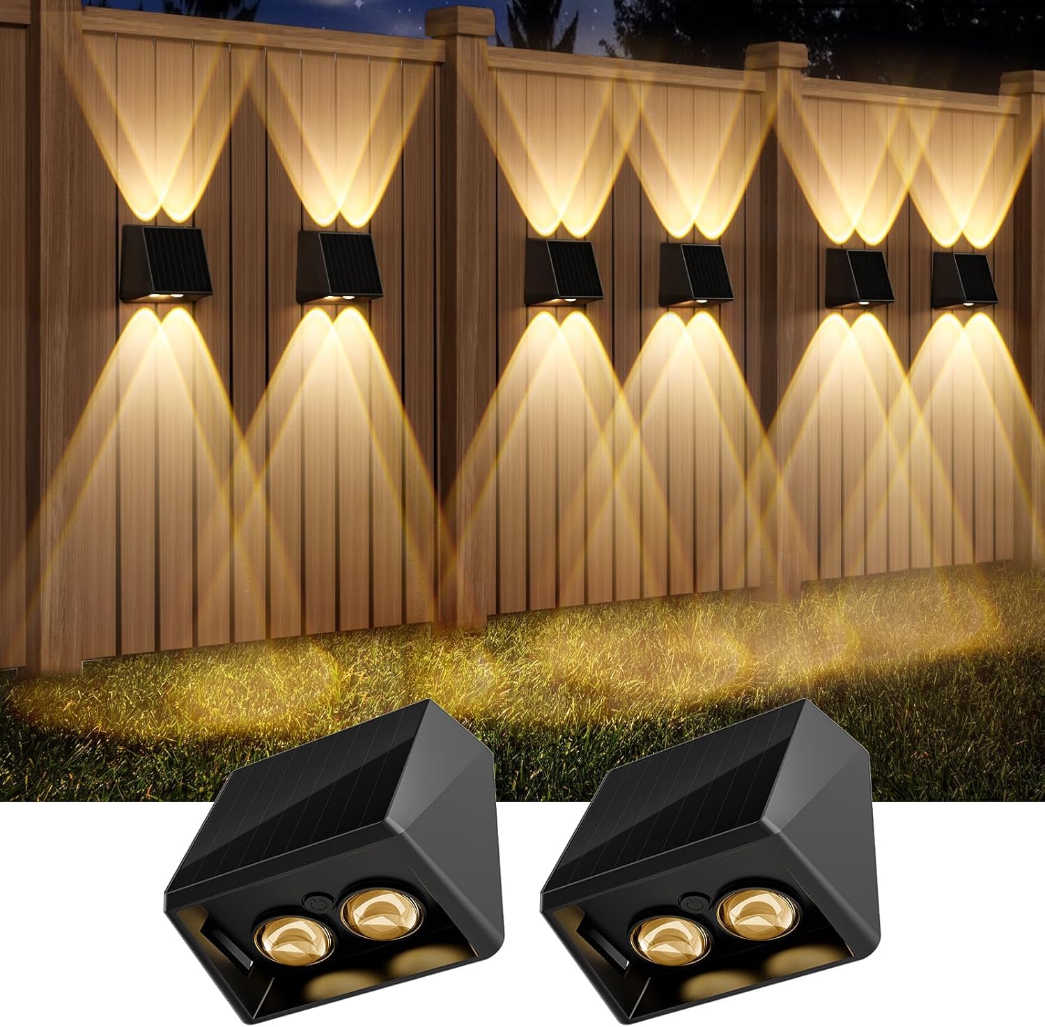 Quntis Up Down Solar Wall Light Outdoor, 4 Pack Solar Fence Lights Warm White & 13 RGB Modes IP65 Waterproof Front Door Outside Lights for Garden Porch Deck Stair Post Yard Backyard Pathway