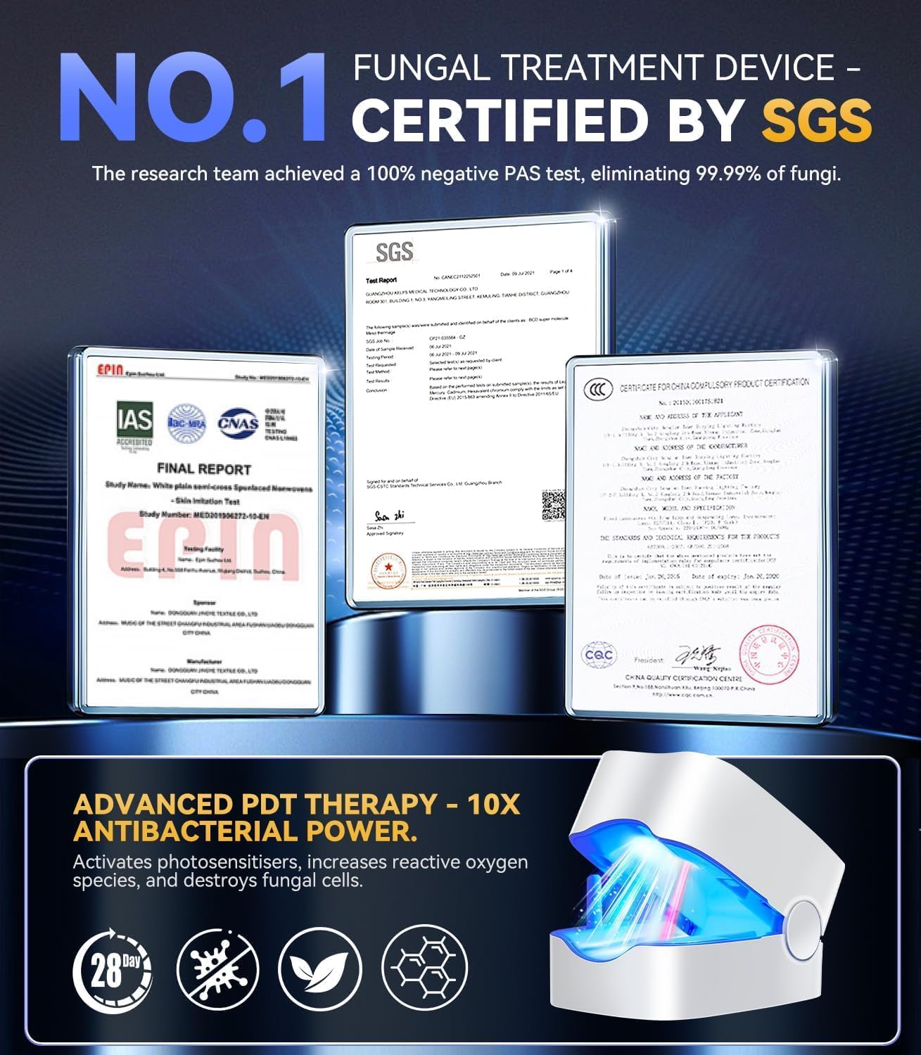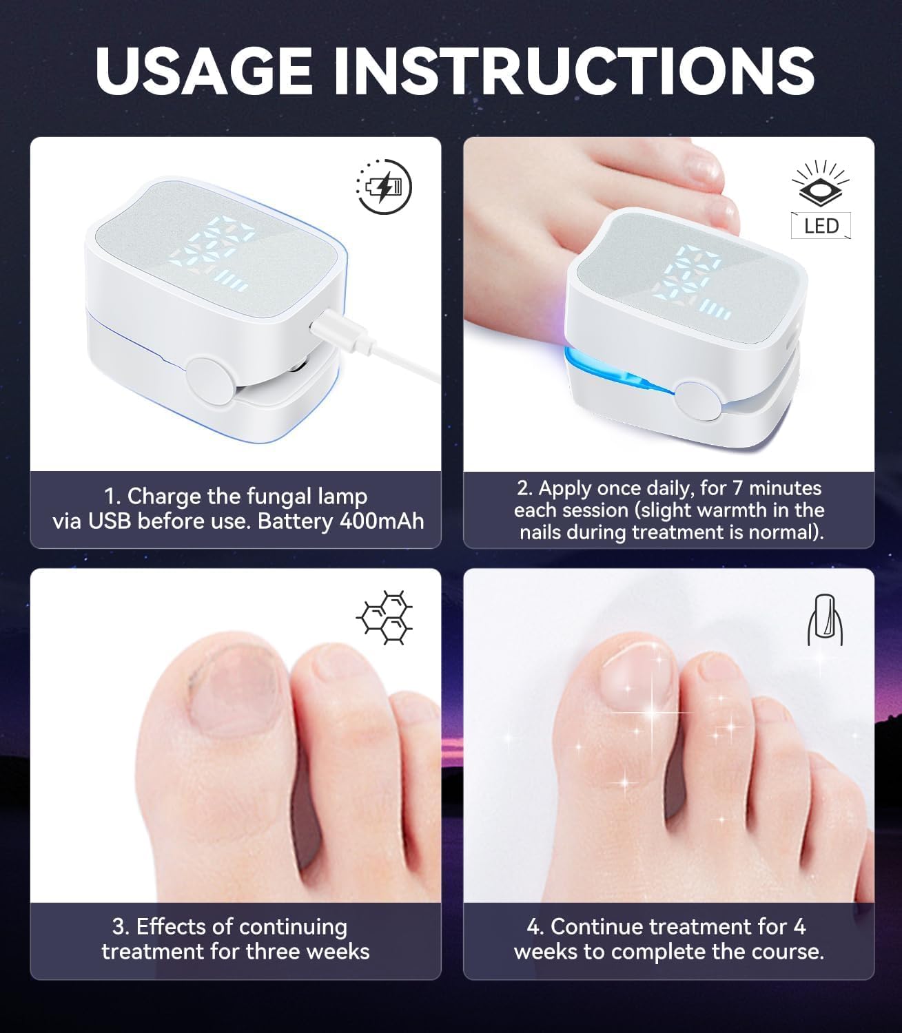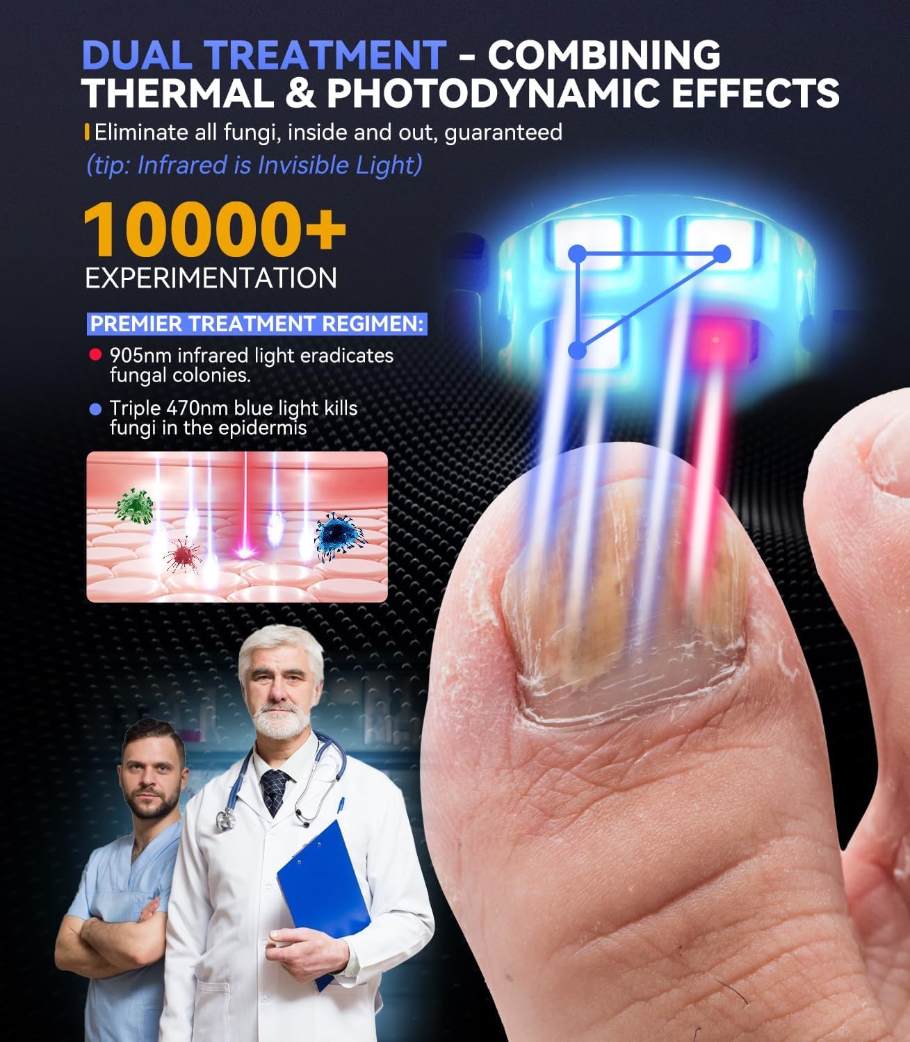 TERRIFI Upgrade Nail Fungus Treatment Device with Time Display & Rechargeable, FSA & HSA Eligible Treatment for Damaged Discolored Thick Toenails & Fingernails, 950nm Infrared Light 500nm Blue Light