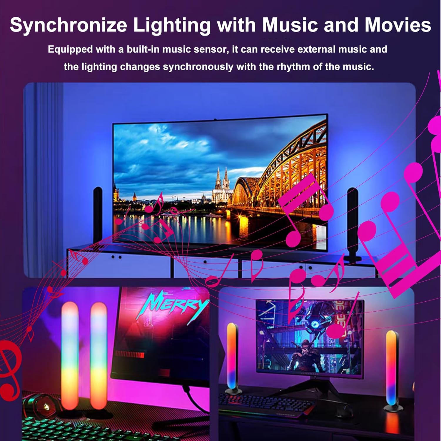 • 【Synchronize Music, Movies, and Games】 As a TV backlight, it is equipped with a highly sensitive sound sensor that can recognize all music melodies and react and move according to the beat, allowing the LED light bar to perfectly synchronize with music or ambient sound, providing an unprecedented sound and light experience.