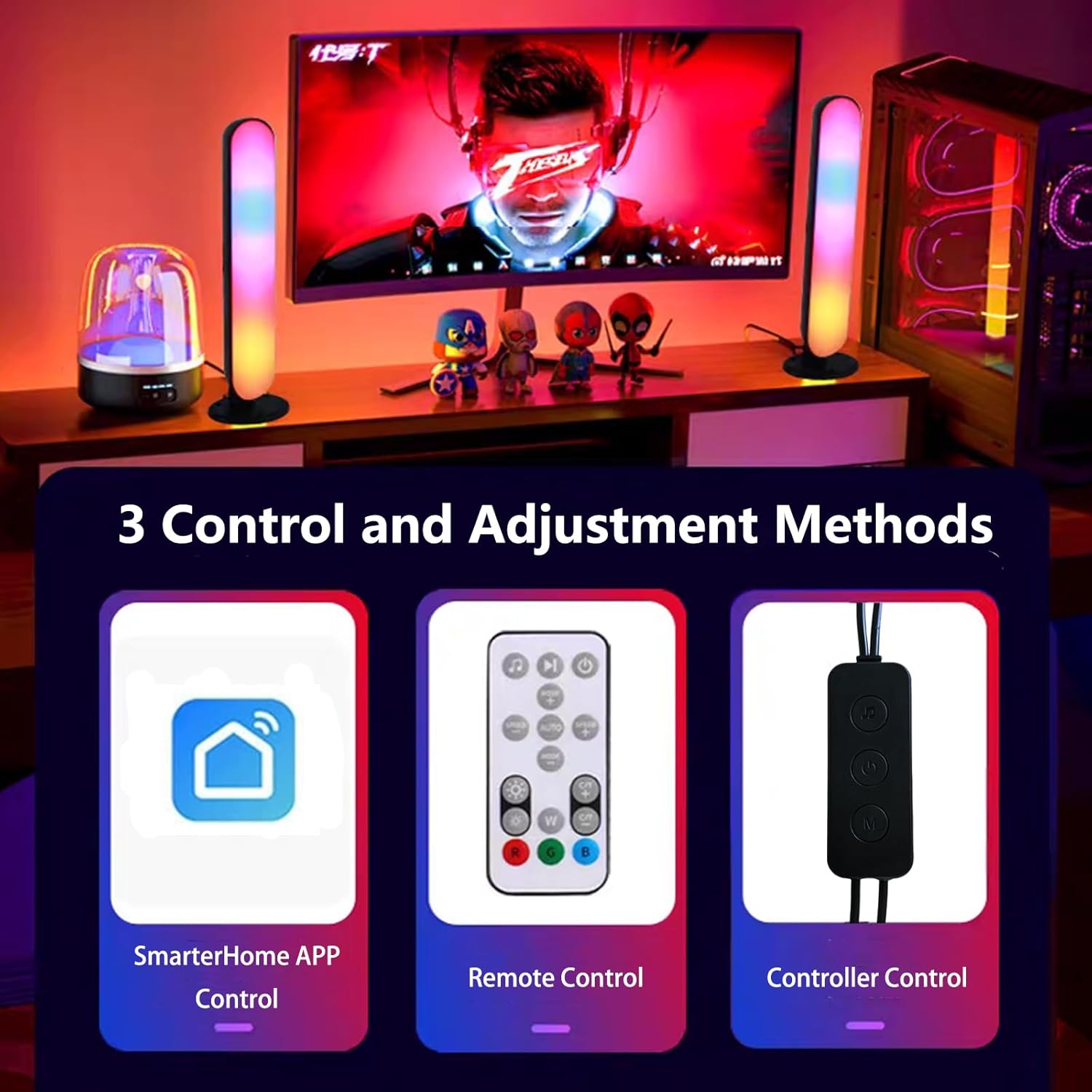 • 【Widely used】 RGBIC Light Bars can be easily installed next to or behind the screen. Upright or flat, depending on your lighting preferences or style. Widely applicable scenarios, such as game rooms, audio-visual rooms, living rooms, bedrooms, dining rooms, offices, etc. Suitable for different occasions, such as birthday parties, anniversaries, wedding decorations, Christmas and New Year's Eve, etc. Can add vivid and colorful lighting and atmosphere decoration to any creative space!